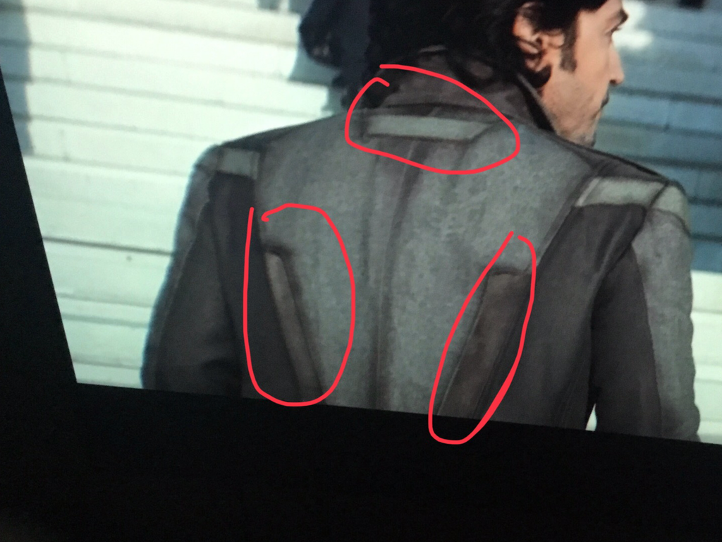 • Fabric strap running diagonally across the chest and upper sleeves