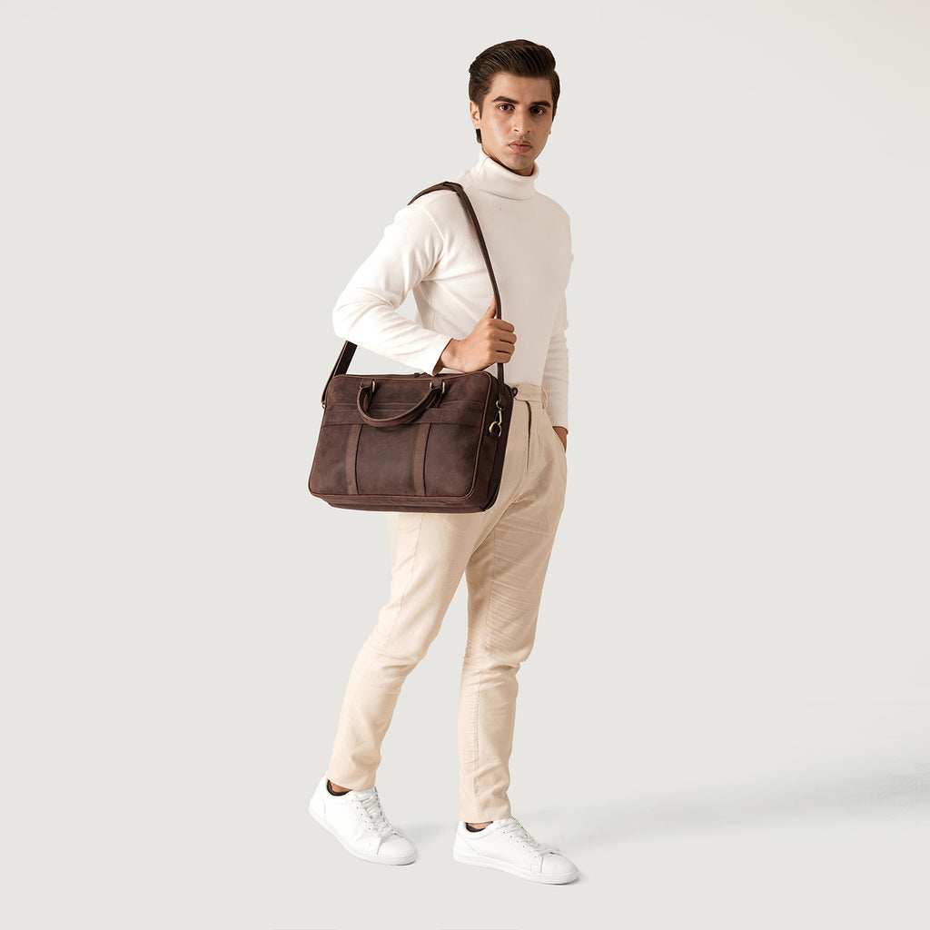 The Norman Vintage Distressed Brown Leather Briefcase